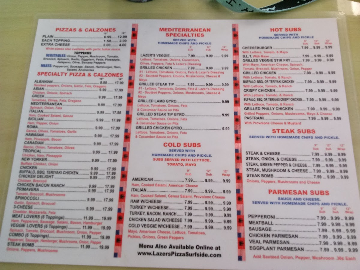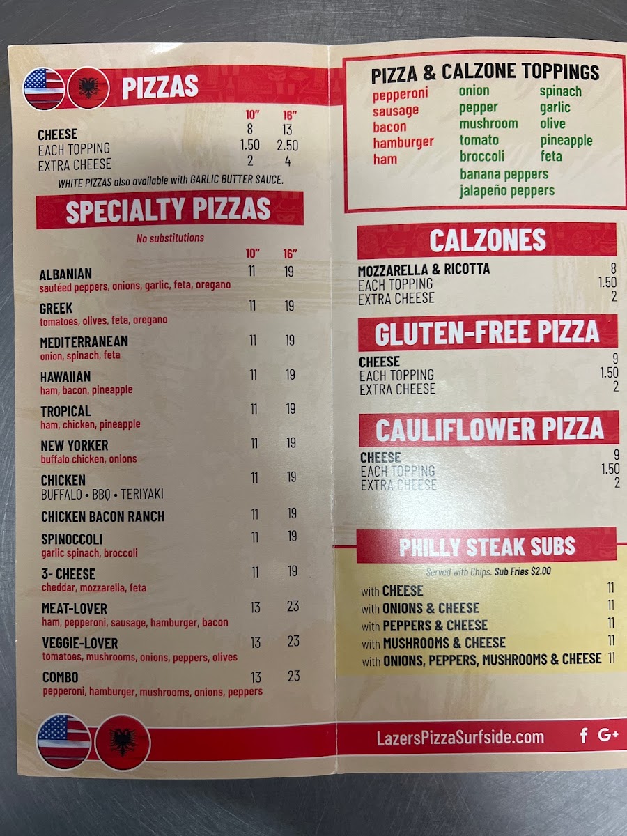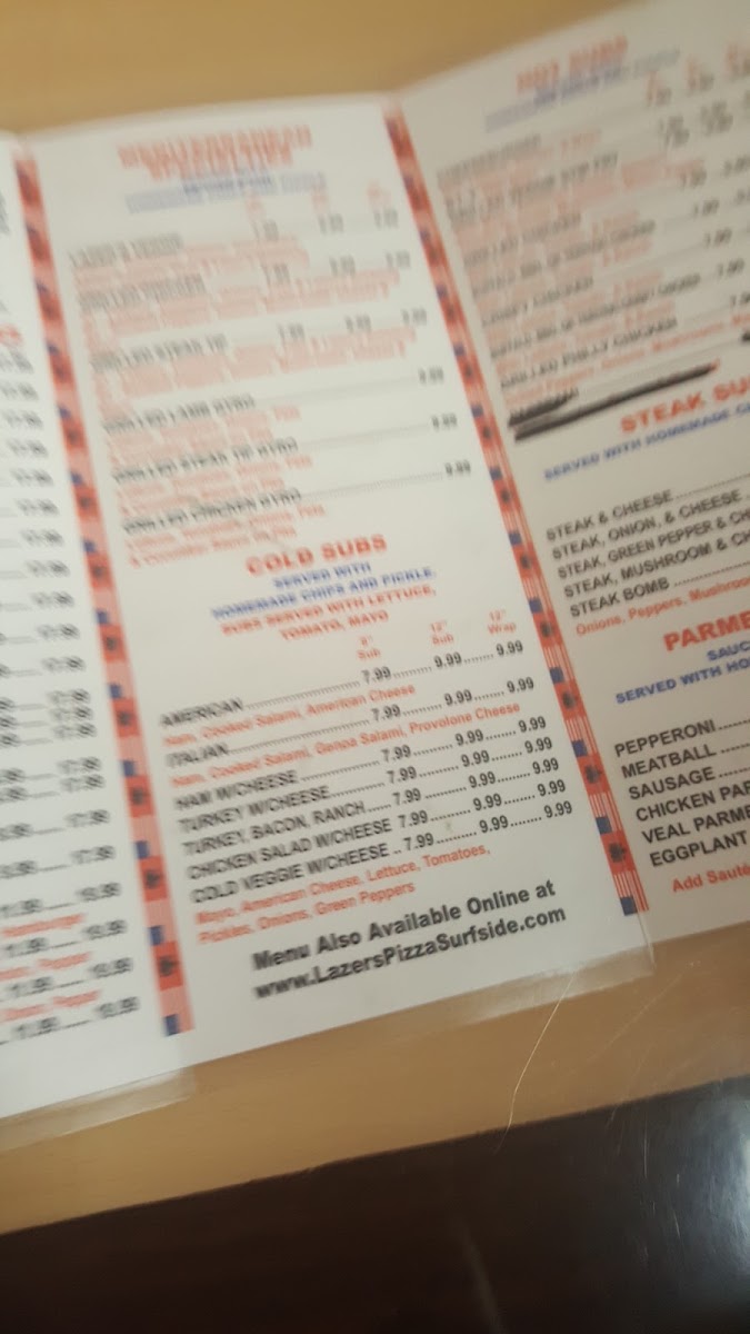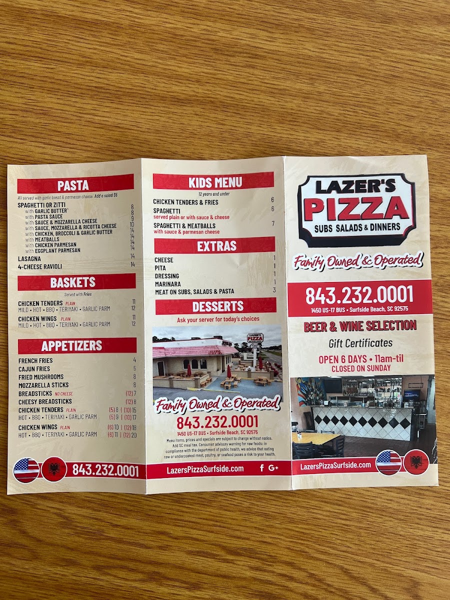 In conclusion, Lazer’s Pizza offers an extensive menu that has something for everyone. Whether you’re in the mood for a quick snack, a fresh salad, a hearty pasta dish, or a satisfying pizza, their offerings are diverse and full of flavor. The combination of classic comfort food with specialty options ensures a great dining experience every time.